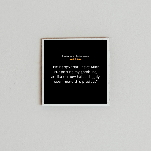I’m happy that I have Allan supporting my gambling addiction now haha. I highly recommend this product.